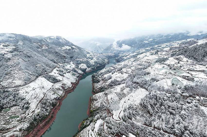 湖北日报客户端(通讯员范宏霞、吴以红)当鹅毛大雪纷纷扬扬地洒落在巴东神农溪两岸,千里冰封的景象令人叹为观止。在这片银装素裹的世界里,神农溪最宽阔的流域罗平湖仿佛一条巨龙沉睡在冰雪之中,等待春天的唤醒。在这冰冷而静谧的时刻,神农溪与雪花的交融更显得相得益彰,既有大河的雄浑壮丽,又有雪的纯净娇弱。