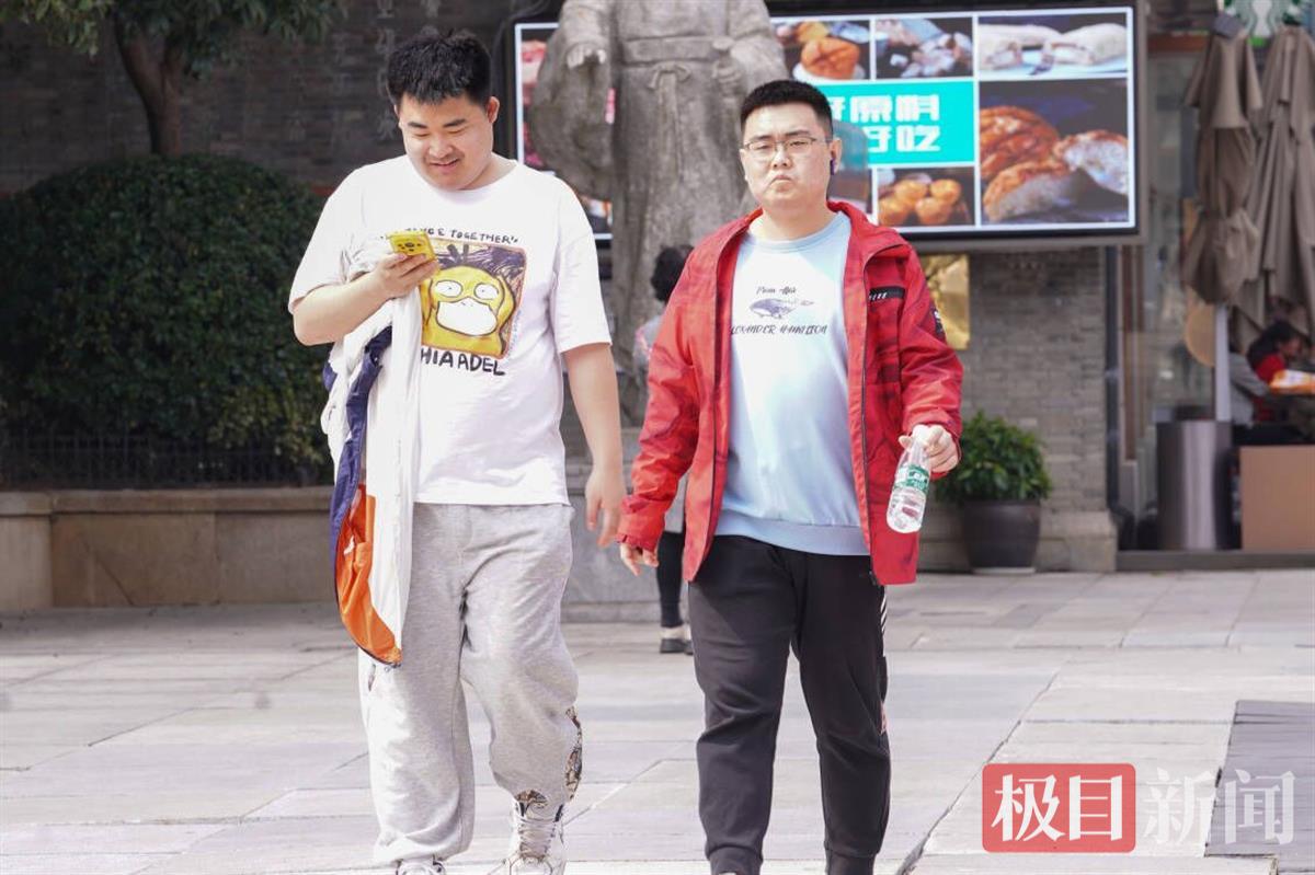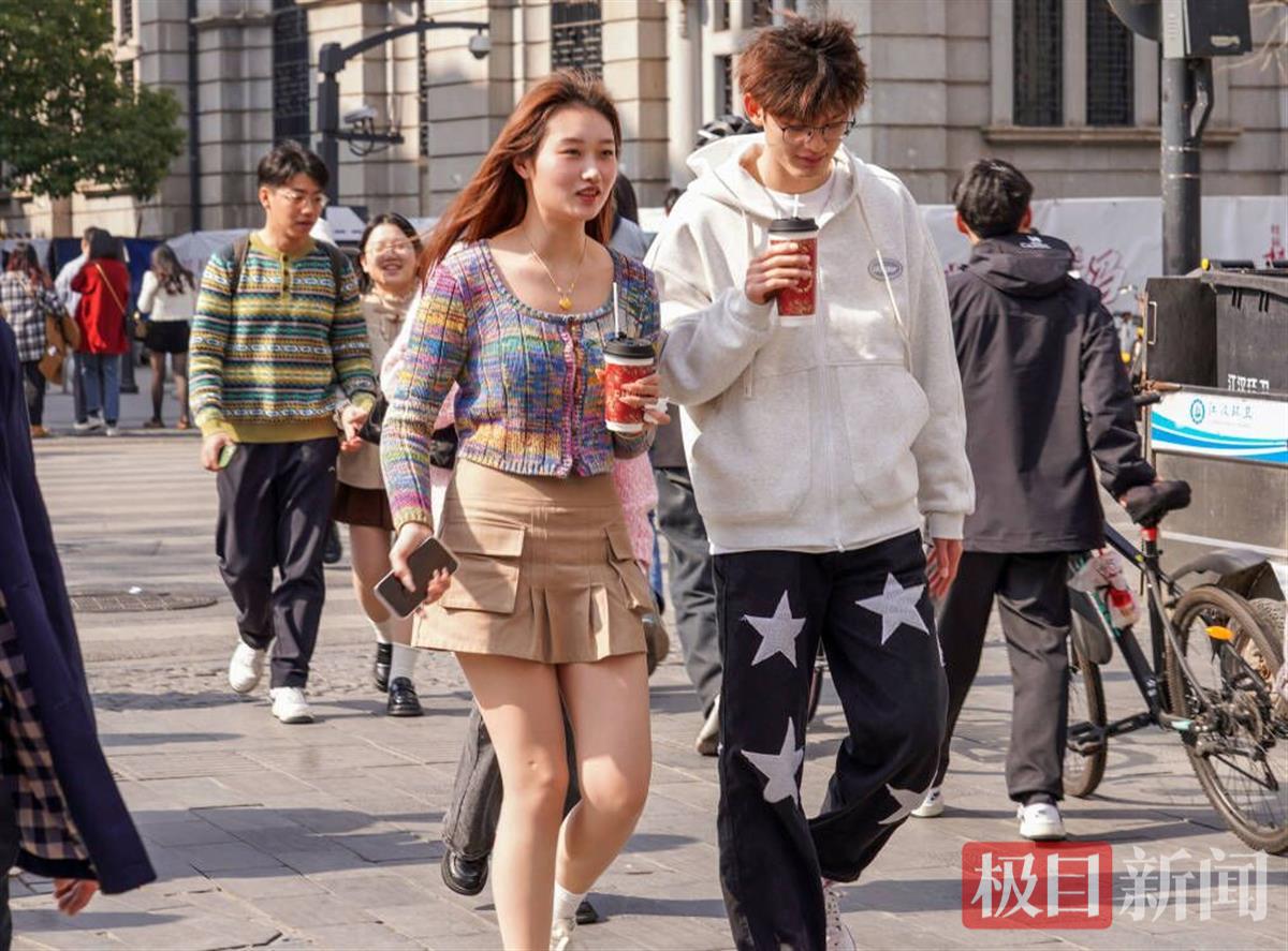 午后,记者在江汉路看到,市民朋友们大多穿着轻薄的春装,有些女孩已经穿裙子甚至是超短裙了,有些小伙只穿一件短袖。