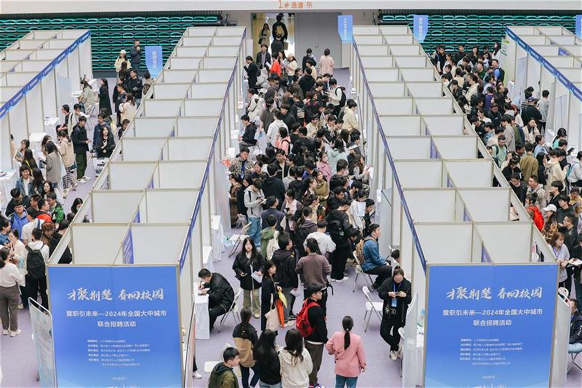春分时节,花满校园。3月23日上午,“才聚荆楚·春回校园”暨职引未来——2024年全国大中城市联合招聘活动主会场,在武汉科技大学黄家湖校区沁湖体育馆举行。220家用人单位共提供8000余个岗位,其中月薪10000元以上的岗位有1000余个。