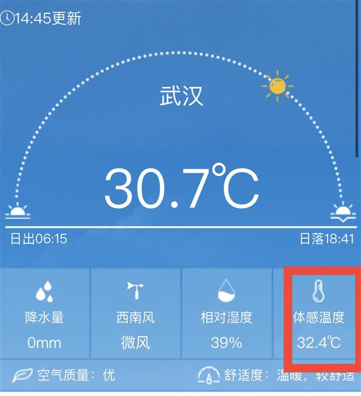 午后2时45分,武汉气温达到了30.7°C,体感温度32.4°C。“夏天到了?这么快?”黄先生感觉天气特别异常。