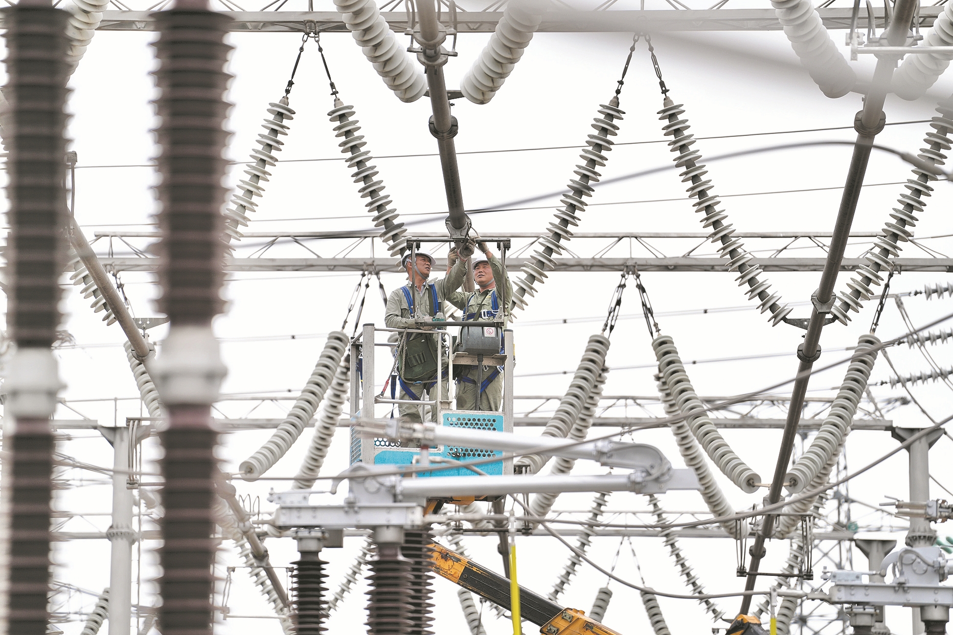 4月17日,国网襄阳供电公司变电运检分公司检修人员在南漳县220千伏水镜变电站开展刀闸大修工作。