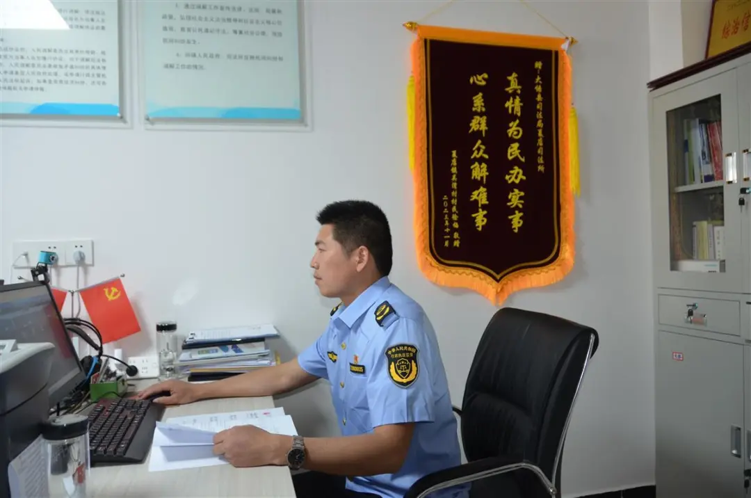 今年36岁的周亮亮,2005年12月入伍,在火箭军某部服役16年,从一名普通士兵到“十佳班长”,2008年8月,周亮亮在部队期间光荣加入中国共产党,多次荣获“优秀共产党员”“优秀士兵”等荣誉称号。把最美好的青春献给了祖国的国防事业,至今单身的周亮亮,提及当兵的经历,脸上洋溢着无比自豪。2022年4月周亮亮转业,同年12月,周亮亮被安置在夏店司法所担任负责人,成为夏店镇人民调解委员会一名人民调解员。从一名军人到调解员,为了适应新岗位,周亮亮刻苦钻研学习法律知识,参加各种培训,向老干部学习请教,主动进入角色,迅速胜任岗位。今年1月,周亮亮被安排进驻偏远的关溪村,在干好司法所本职工作的同时,还要与村干部一起谋划经济发展,做好森林防火、医保征收等工作。“有矛盾,找周亮亮”