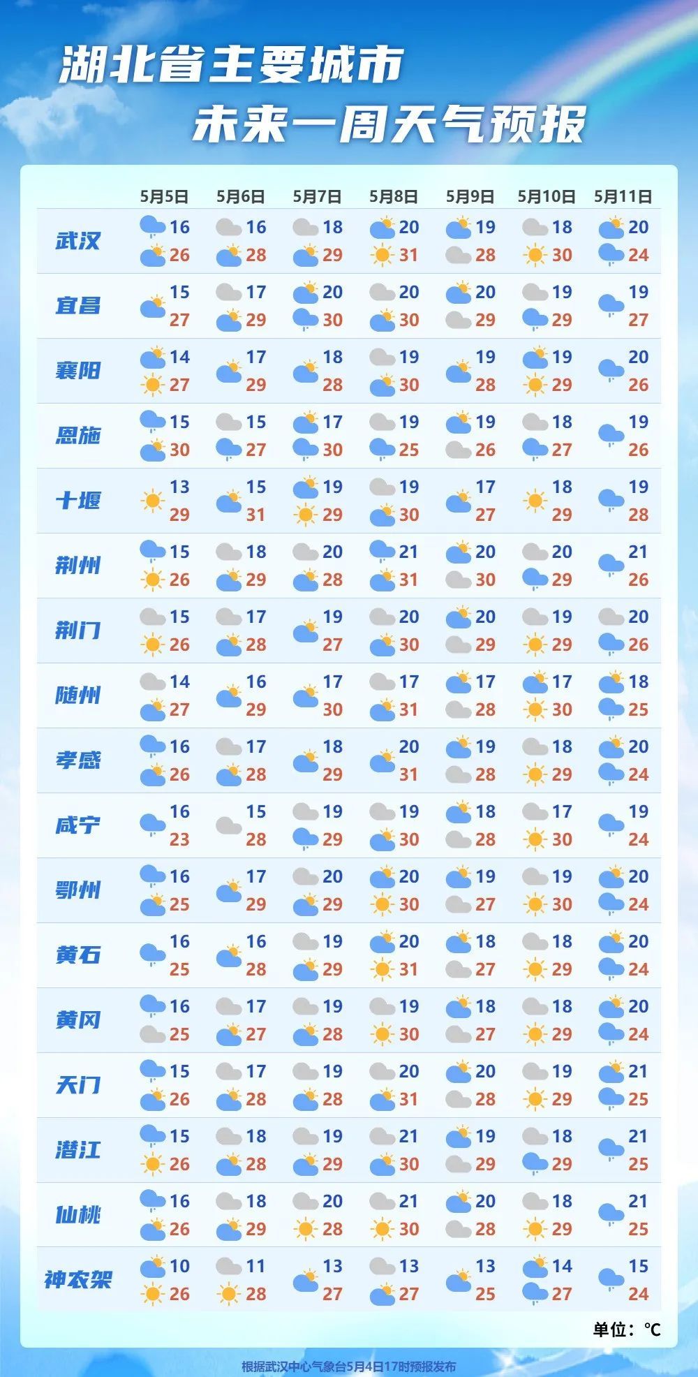 预报来源:武汉中心气象台2024年5月5日08时预报