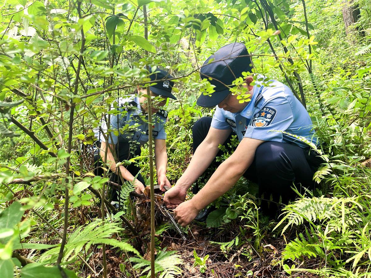 护绿水青山,保护生态环境。5月21日、22日,湖北省襄阳市保康县公安局森林警察大队组成巡查防护工作专班,在所辖大水、官山等三大林场开展野生动物保护清山清套专项行动,集中清理、收缴捕兽夹等乱捕滥猎野生动物非法工具,全力守护野生动物栖息环境安全。