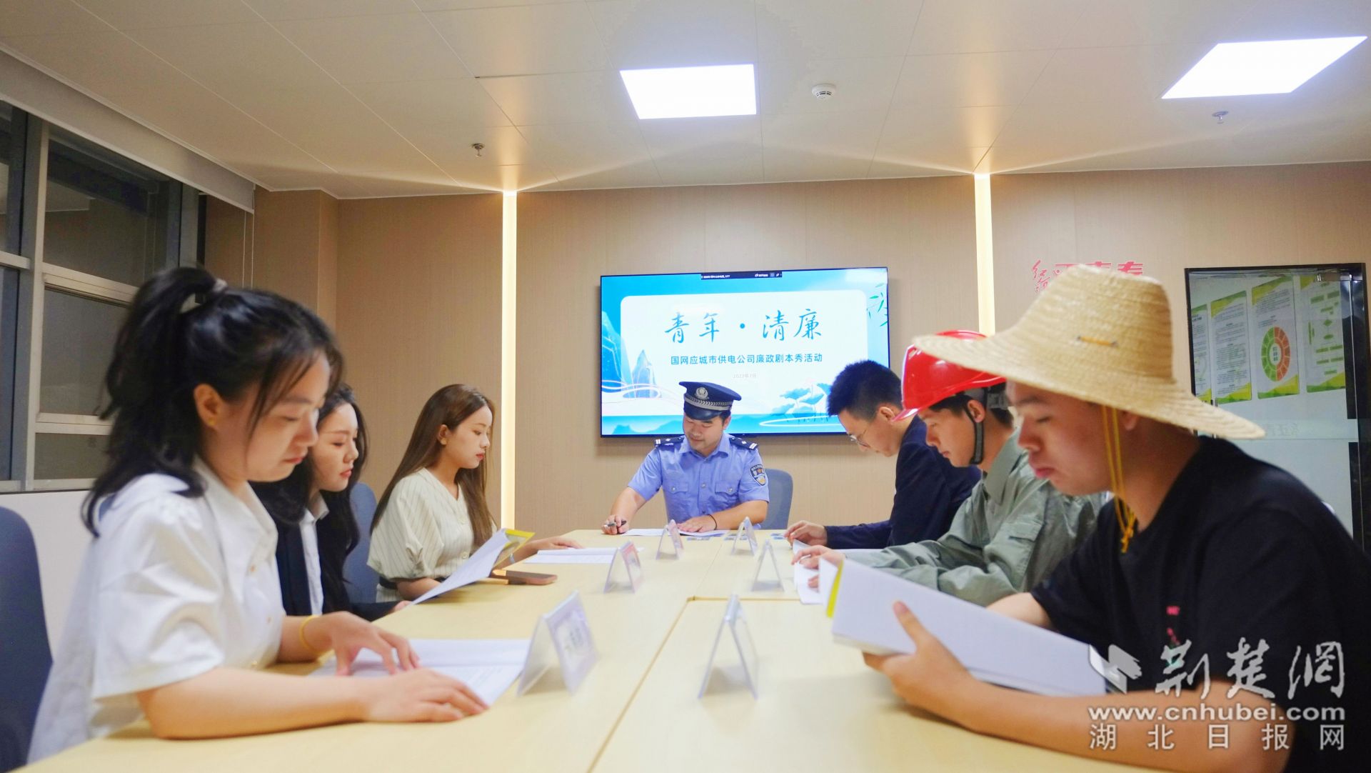 应城市供电公司青年之家里,“青年·清廉”警局指证剧本秀正在上演。公司采取“领学人演绎+滚动式发言+开放式讨论+嵌入式总结”的形式,促使参与者与旁观者都能在剧情中学习党纪法规,充分吸收廉洁文化“养分”。