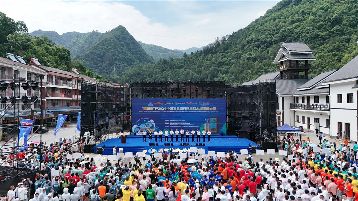 6月22日,“稻花香”杯2024中国宜昌朝天吼自然水域漂流大赛在湖北宜昌市朝天吼漂流景区挥桨开赛,来自全国的2000多名运动员和漂流爱好者、1100余支参赛队伍共同在朝天吼奋楫争先,竞速漂流。