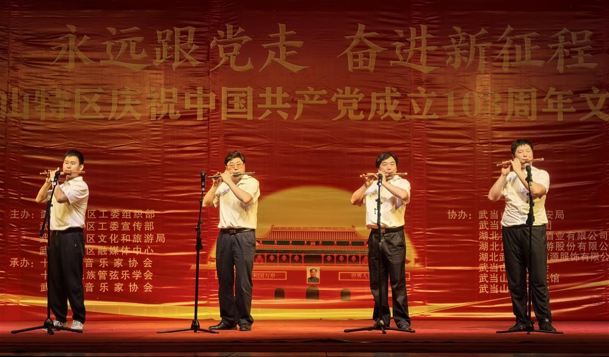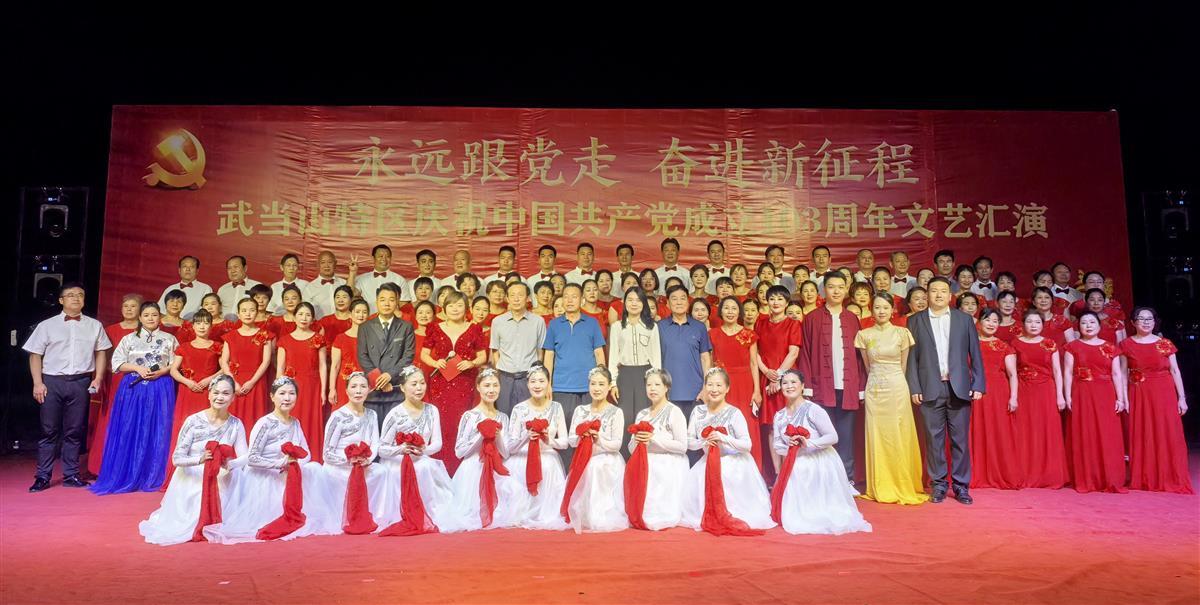 在“七一”党的生日来临之际,6月23日晚,湖北十堰市武当山特区庆祝中国共产党成立103周年文艺汇演在武当文化广场举行。