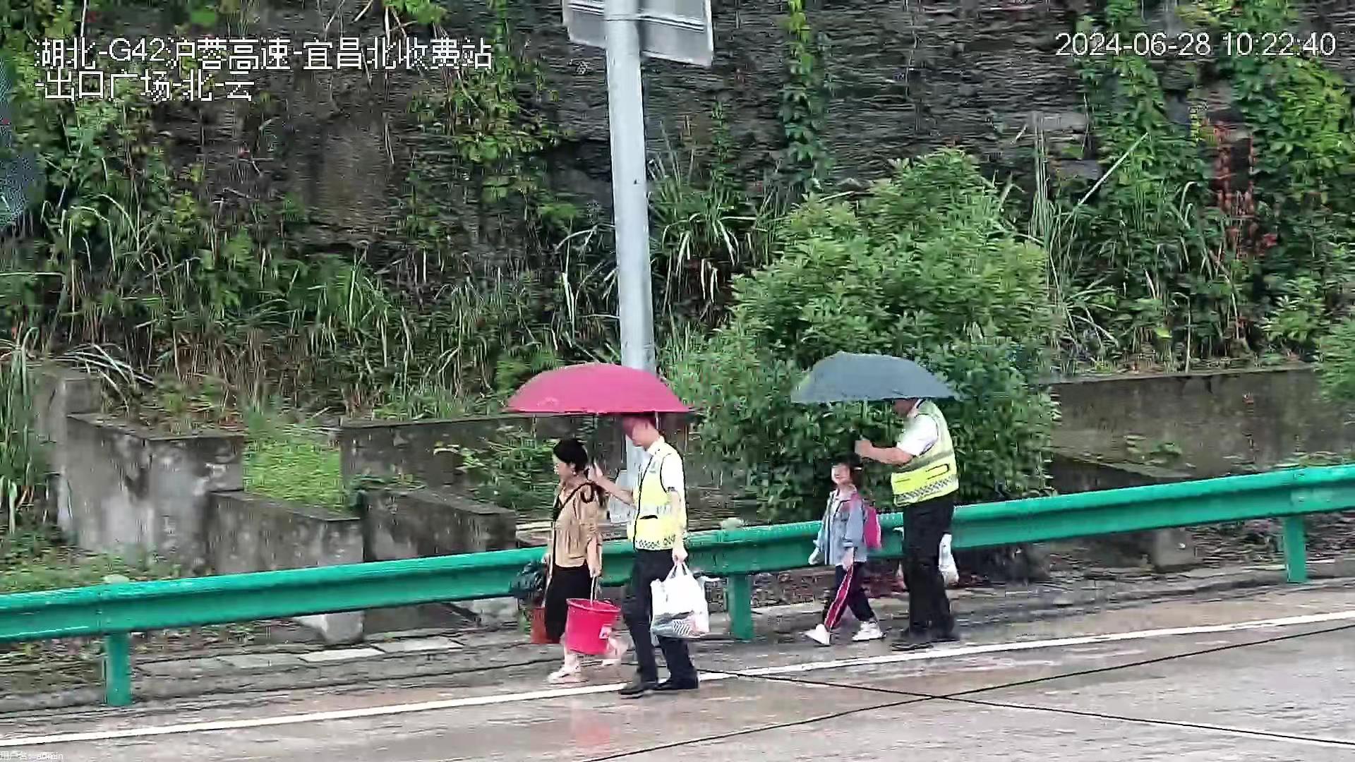 接到指令后,当班收费员黄鹤和胡坤立即带上雨伞,快步走向母女。经询问得知,母女俩乘坐大巴车从重庆回宜昌,快到宜昌北收费站时,司机表示要去往武汉不在宜昌停留,要求母女自行走下高速再转乘其他交通工具。无奈之下,母女俩不得不徒步走下高速。