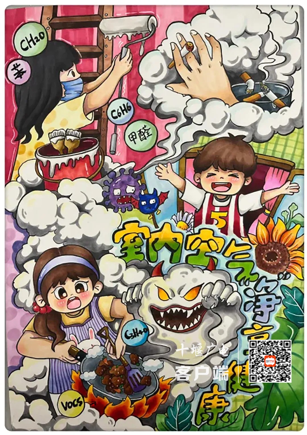 此次活动中,获得中学组绘画作品二等奖的是丹江口市均县镇初级中学的罗云丹同学,作品名称为《室内空气“净”享健康》,指导老师为杨阔。该作品也是湖北省报送作品中唯一获得前三的作品。