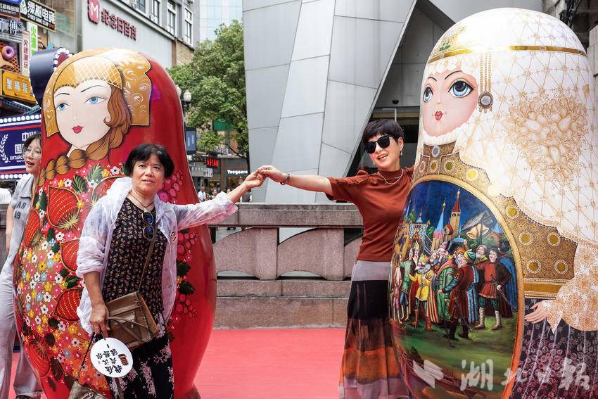 据悉,武汉俄罗斯商品馆于6月底正式开业,紧邻江汉路地铁站,店内装修以白、蓝、红为主色调,店面门口摆放了4个大型俄罗斯套娃雕塑,店内货架上,各式各样的俄罗斯特色产品琳琅满目。(湖北日报全媒记者任勇摄)