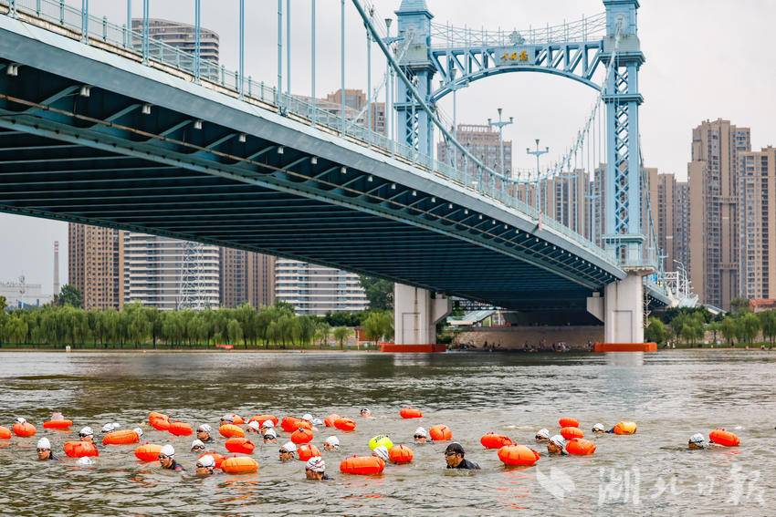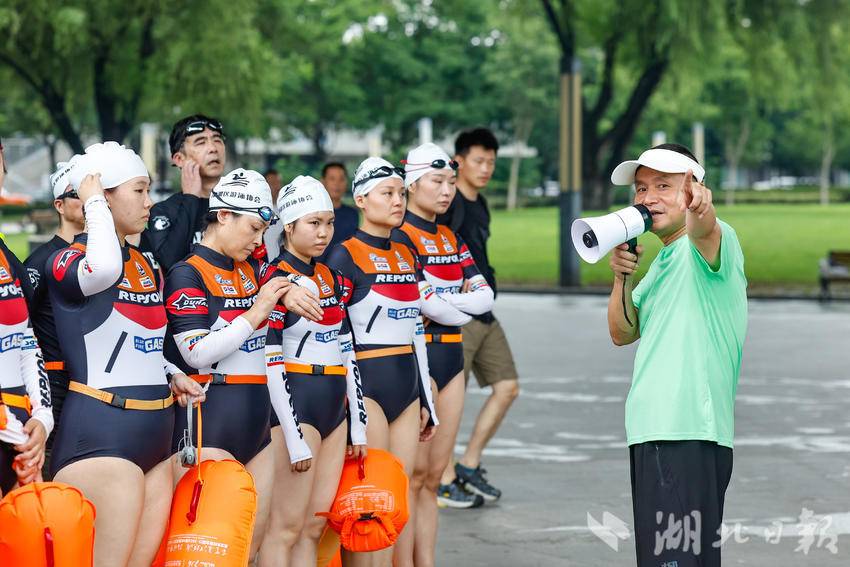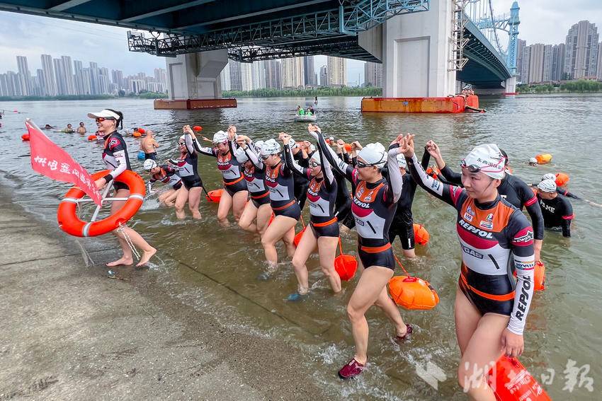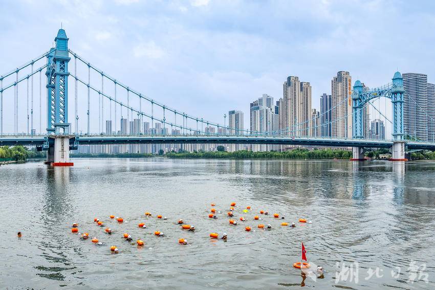 2024年7月13日,在武汉市汉江水域古田桥下,来自东西湖区游泳方队正在进行渡江训练,训练内容包括了陆上训练和水中训练,以强化队员们的默契程度和体能。从6月开始,参加今年渡江节的二十多支本地横渡方队就在长江、汉江、东湖、木兰湖、举水河等公开水域开展训练,在不同水情的情况下模拟横渡长江。近日,武汉市体育局官网发布公告,将原计划于2024年7月16日举行的渡江节活动延期。据东西湖方队负责人介绍,方队在水情安全的情况下,坚持训练,以保持最佳的运动状态和体能。(湖北日报全媒记者倪娜 通讯员徐一帆 张晓晔 摄)