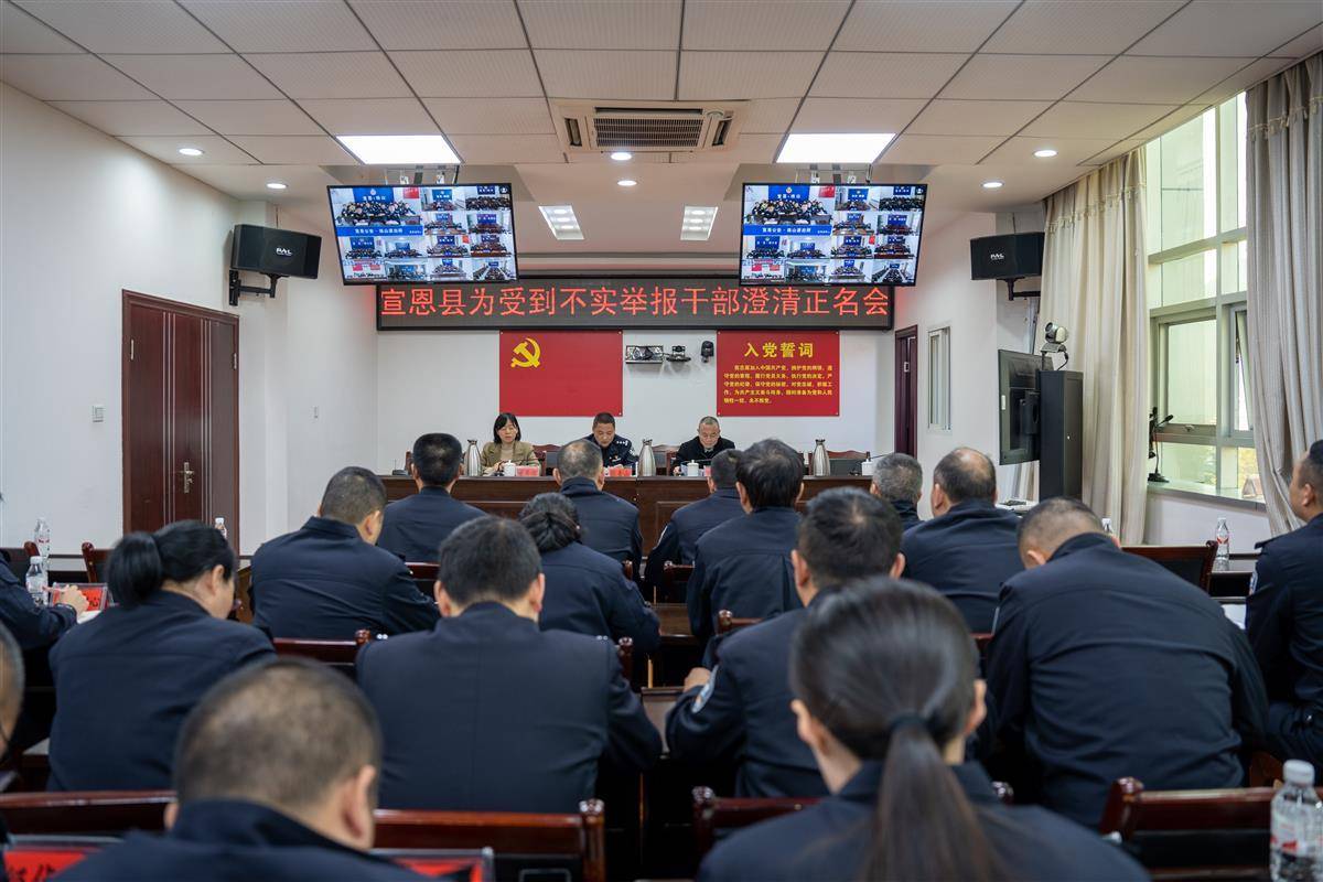 宣恩县公安局为民警段某新、陈某利“伪造询问笔录、办冤案假案”不实举报召开澄清正名会。(省公安厅供图)