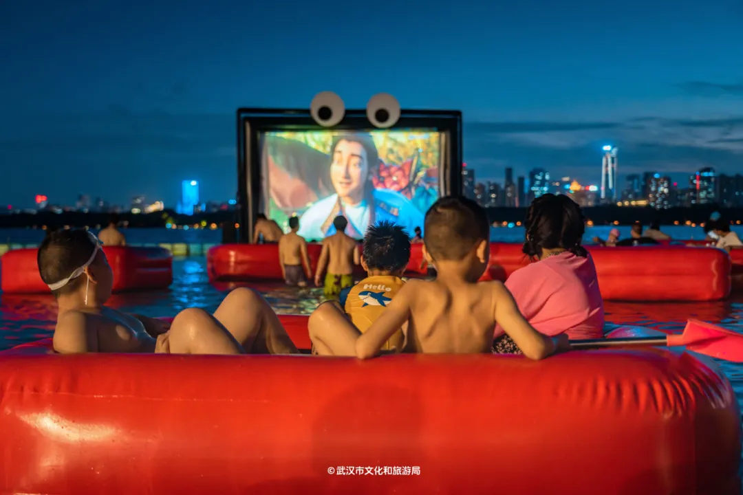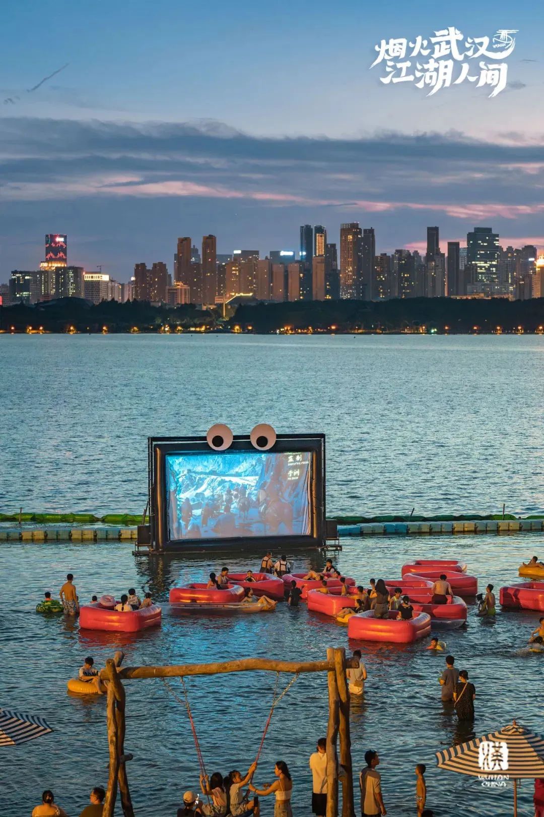 电影在19:50左右天黑后开始放映(如遇大雨等极端天气则取消),目前限时免费,入园游玩东湖沙滩即可参与。片单每周都有一个主题,治愈系、喜剧类、国漫、爱情……不少经典电影。东湖沙滩Moon•Night水上漂浮影院从7月开放至10月。