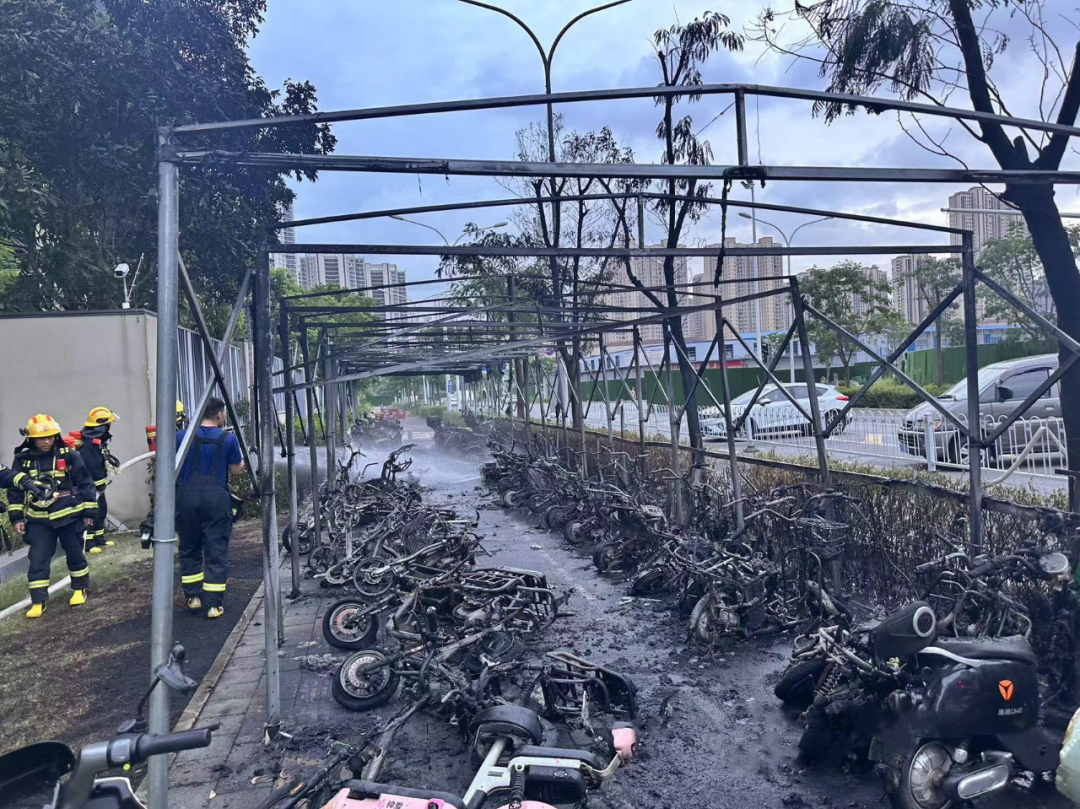2024年7月27日05时26分,位于洪山区张家湾街道万科城市之光小区西门外南市道路电动自行车棚(车辆品牌:雅迪;生产企业:雅迪科技有限公司;电池类型:铅酸电池;)充电时起火,起火原因系电池电气线路故障。