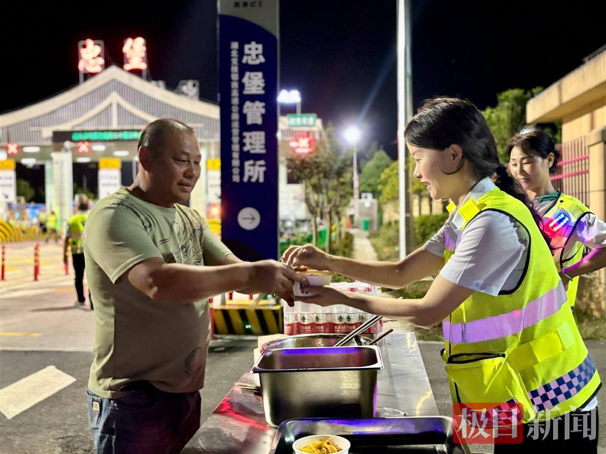 忠堡收费站工作人员为滞留司乘提供水和食物