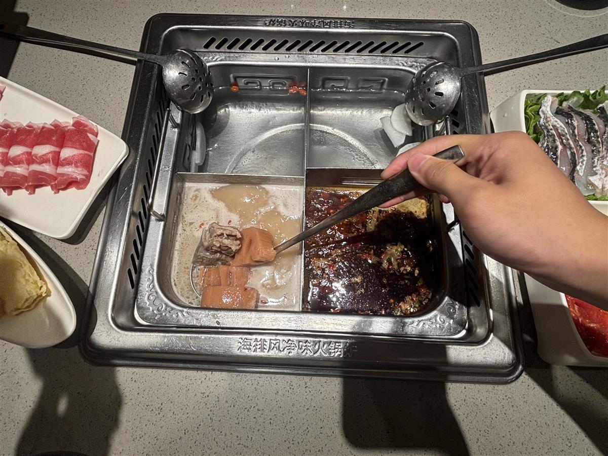 “选择藕汤骨头锅底是因为好奇,这个锅底的藕汤很浓稠,比较好喝。”采访中,一位同样点了藕汤骨头锅的顾客告诉记者,这是她第一次尝试该锅底,藕很糯、汤也很鲜,但用藕汤来涮火锅并没有很惊艳,“与火锅特色的蘸料并不适配,蘸料会盖过藕汤的味道。”