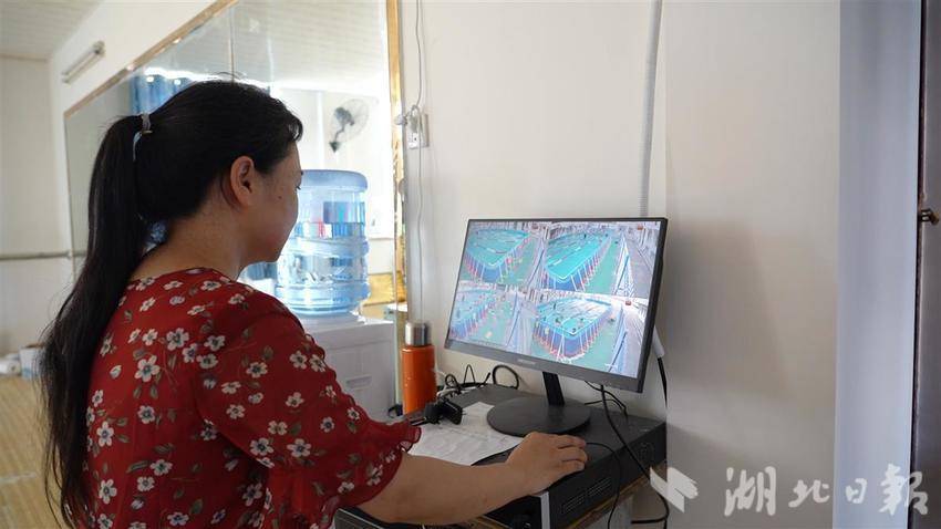 孝昌县邹岗镇中心小学工作人员通过游泳池周边的监控,时时注意学生安全。(湖北日报全媒记者 王欣 通讯员 万阳 摄)