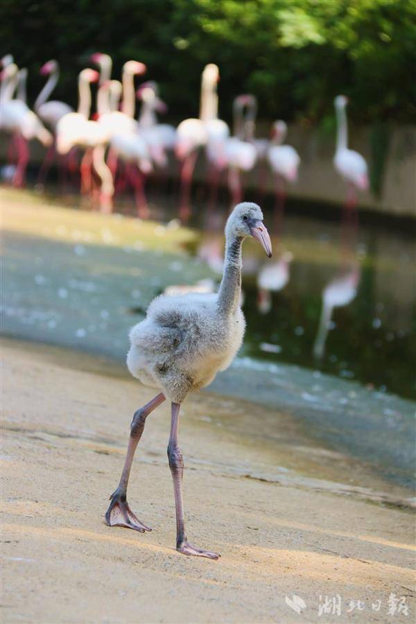 7月16日,武汉野生动物王国的一只小火烈鸟破壳而出,这是华中地区首例人工繁育的火烈鸟。火烈鸟常栖息在温热带的盐湖湖泊、沼泽地带,在中国较为罕见,日常饲养及繁育要求很高。