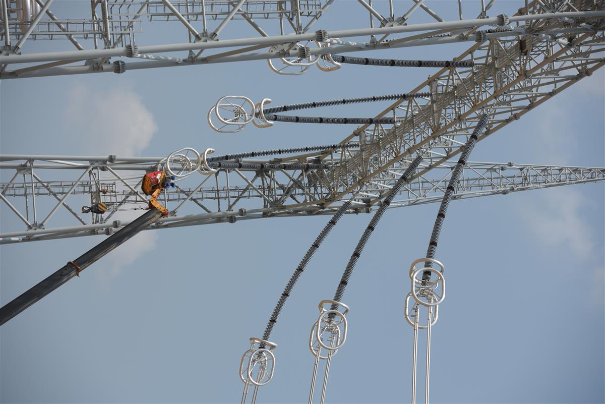8月22日,在湖北省黄石市阳新县1000千伏特高压黄石变电站及配套线路工程施工现场,500余名施工人员顶着39摄氏度的高温,正在紧张有序地开展主变压器高压套管安装和导线展放工作,力争在10月建成投运该工程,提升湖北电网供电能力,1000千伏黄石变电站于2023年6月开工,是武汉—南昌特高压工程的重要组成部分。