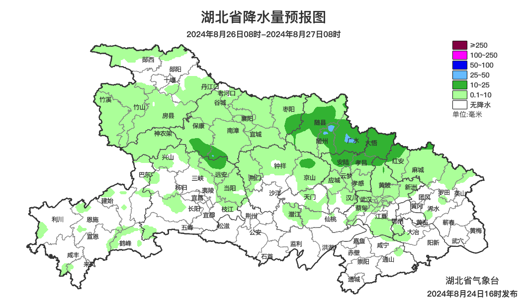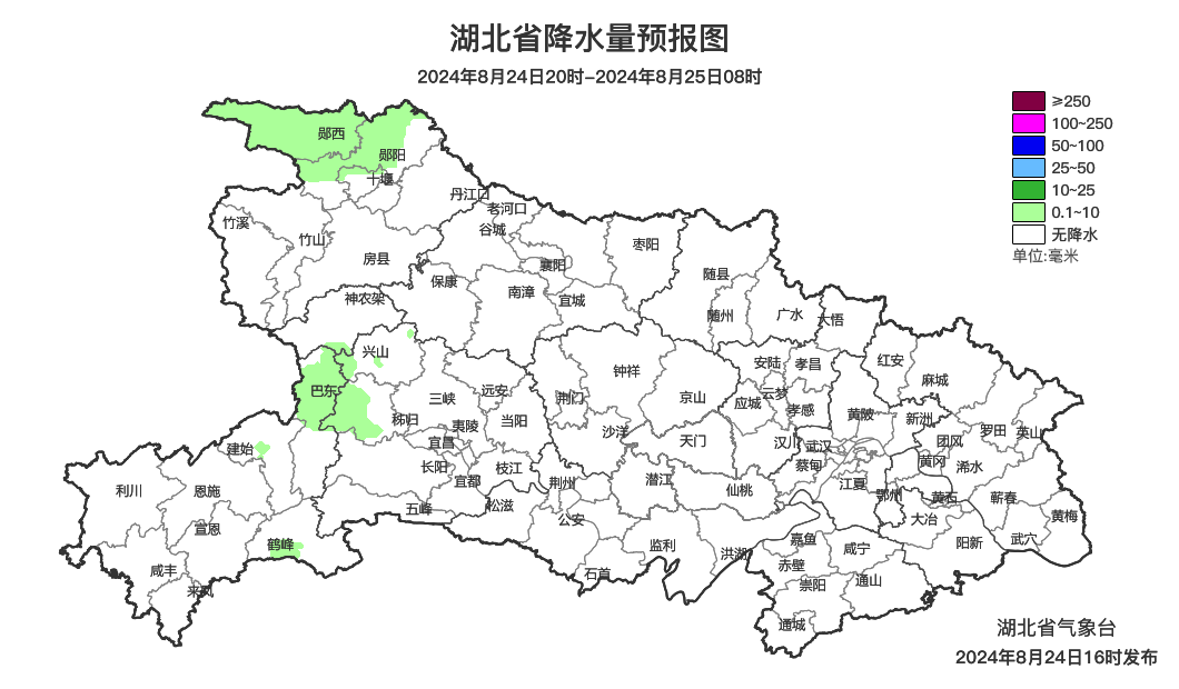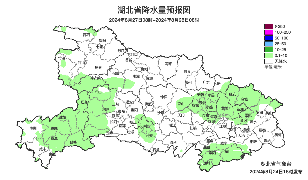 预报来源:湖北省气象台2024年8月24日16时预报