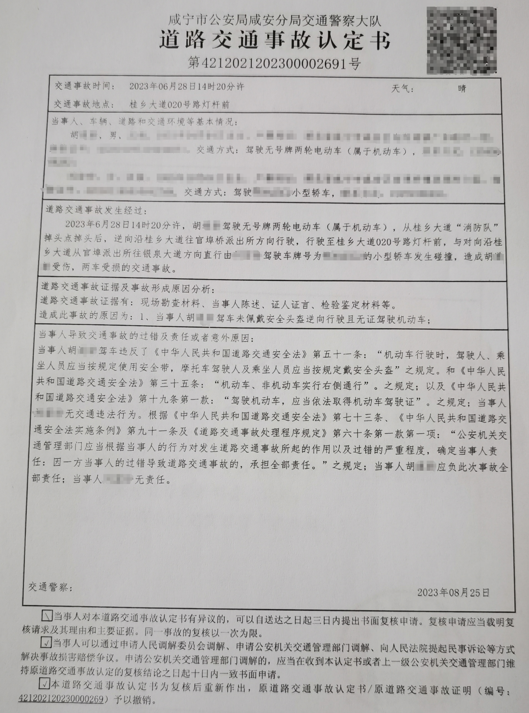 咸宁交警认定