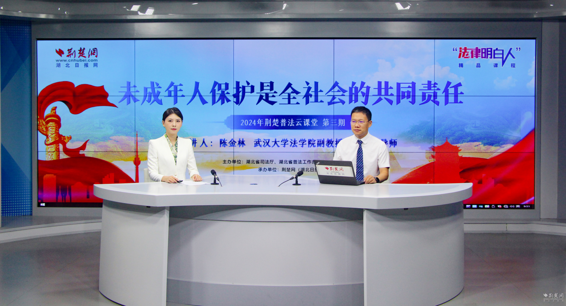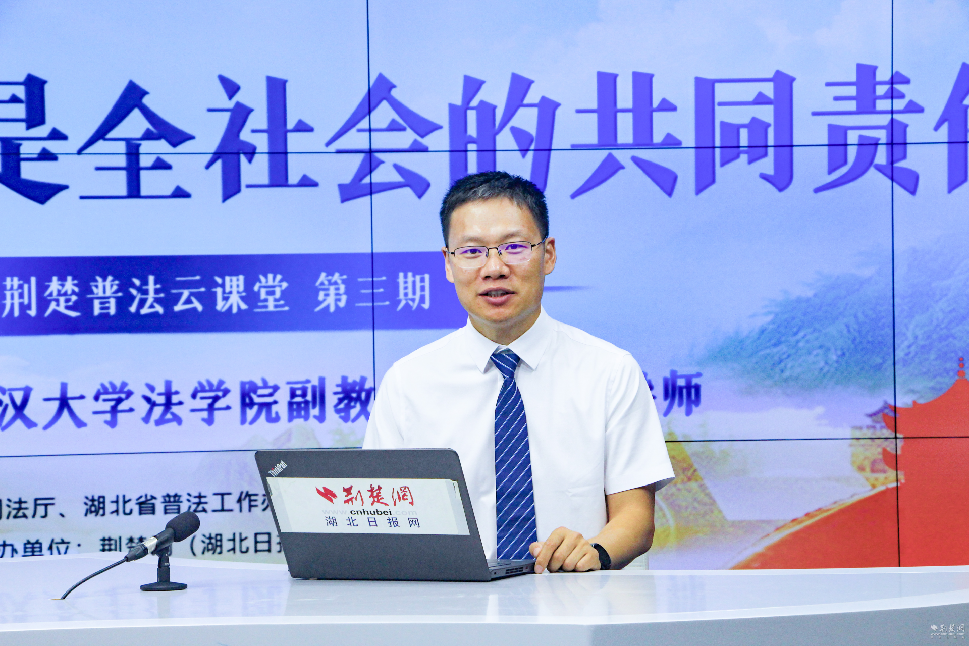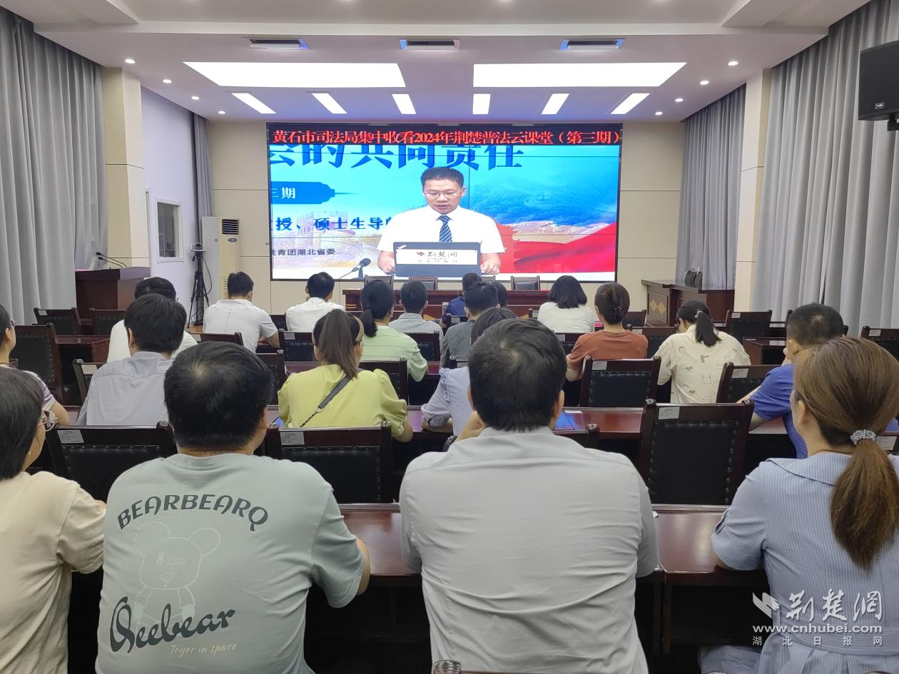 荆楚网(湖北日报网)讯(记者肖慧婷)荆楚云课堂,名师来普法。8月29日上午,由湖北省司法厅、湖北省普法办、共青团湖北省委主办,荆楚网(湖北日报网)承办的2024年荆楚普法云课堂第三期在湖北日报5G演播室开讲。线上共有64万人次观看了直播。