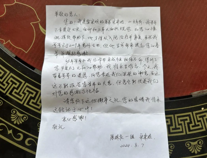 “今天,我带着哥哥的遗愿,向您表达我们深深的谢意……您的恩情我们将永远铭记于心中。”宋来波在感谢信中写下了这样的肺腑之言。