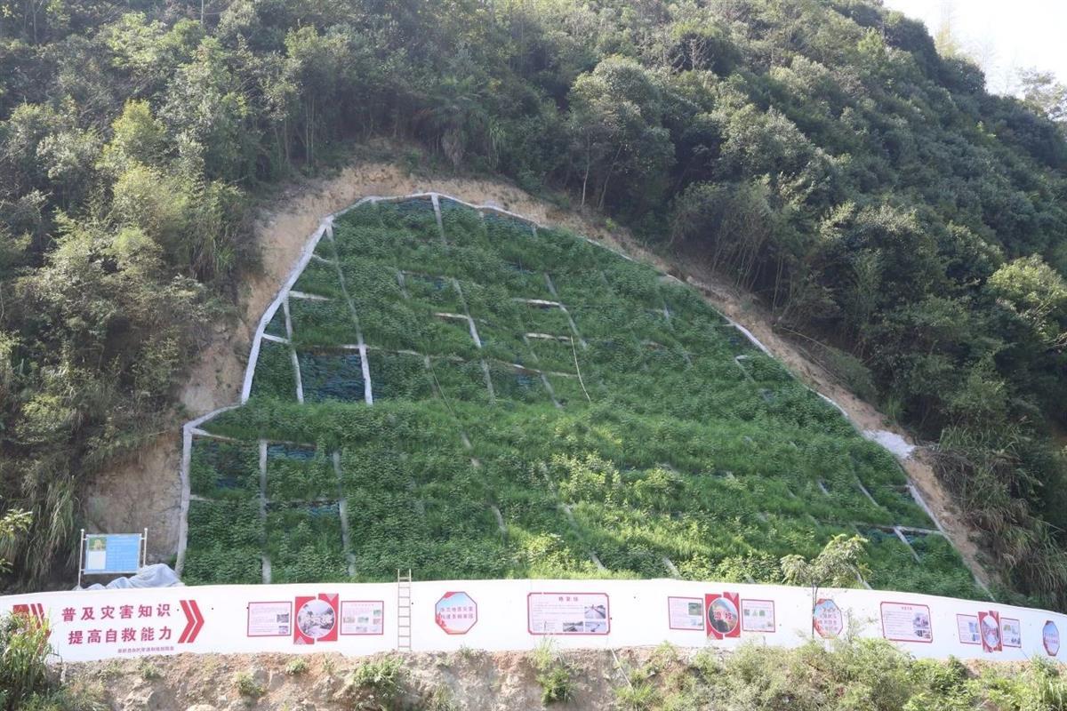 相关职能部门随即召开协调会,研究整改措施。很快,相关部门对滑坡点进行工程治理,完成威胁体1000立方米的清理,修建了长50米、高10米的土墙,坡面采取锚杆格钩的设计进行生态修复。职能部门表示,在工程完工后,将对滑坡坡面进行造林绿化修复,并设立地质灾害防治工作宣传牌,让生态修复与宣传教育同行。