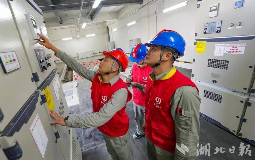 在比亚迪投资百亿元打造的华中地区最大刀片动力电池生产基地里,国网武汉供电公司工作人员进入企业配电房,仔细检查电气设备的运行情况,对近期高温下的企业用电状态进行“把脉问诊”。