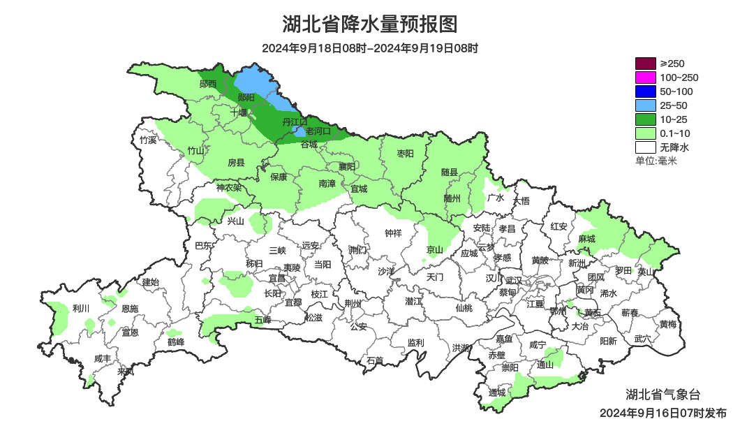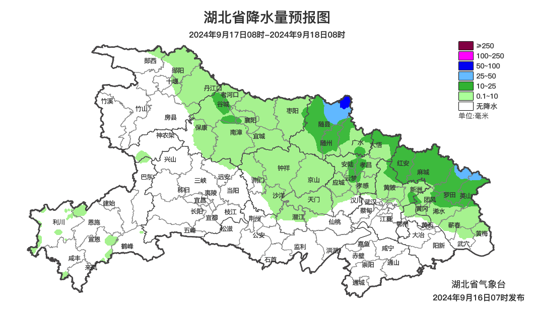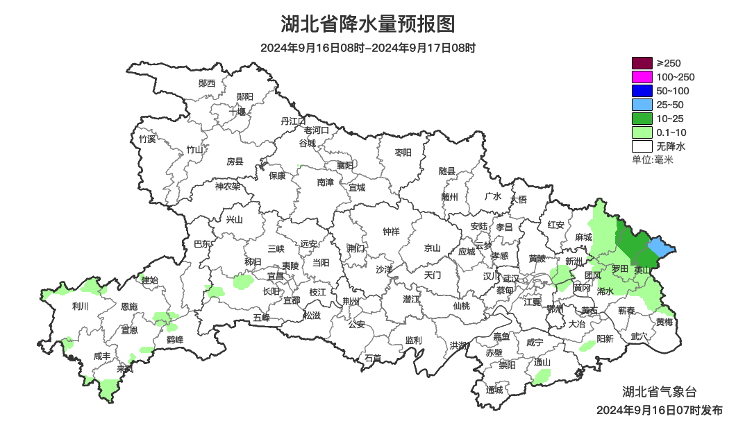 预报来源:湖北省气象台2024年9月16日08时预报