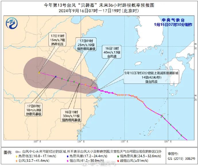 今年第13号台风“贝碧嘉”的中心已于今天(16日)07时30分前后在上海浦东临港新城沿海登陆,登陆时中心附近最大风力42米/秒,强度为强台风级,中心最低气压955百帕,成为1949年以来登陆上海的最强台风。