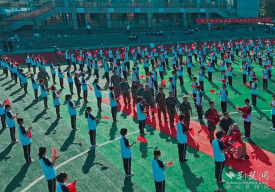 9月29日上午,国庆节临近,湖北师范大学附属中学(黄石一中)操场红旗招展,“致敬英雄 礼赞祖国”——湖北师范大学附属中学(黄石一中)庆祝中华人民共和国成立75周年在这里举行。活动通过走一次红地毯、唱一首主题歌、献一束手捧花、送一本报道集等形式,致敬为共和国无私奉献的英雄们。