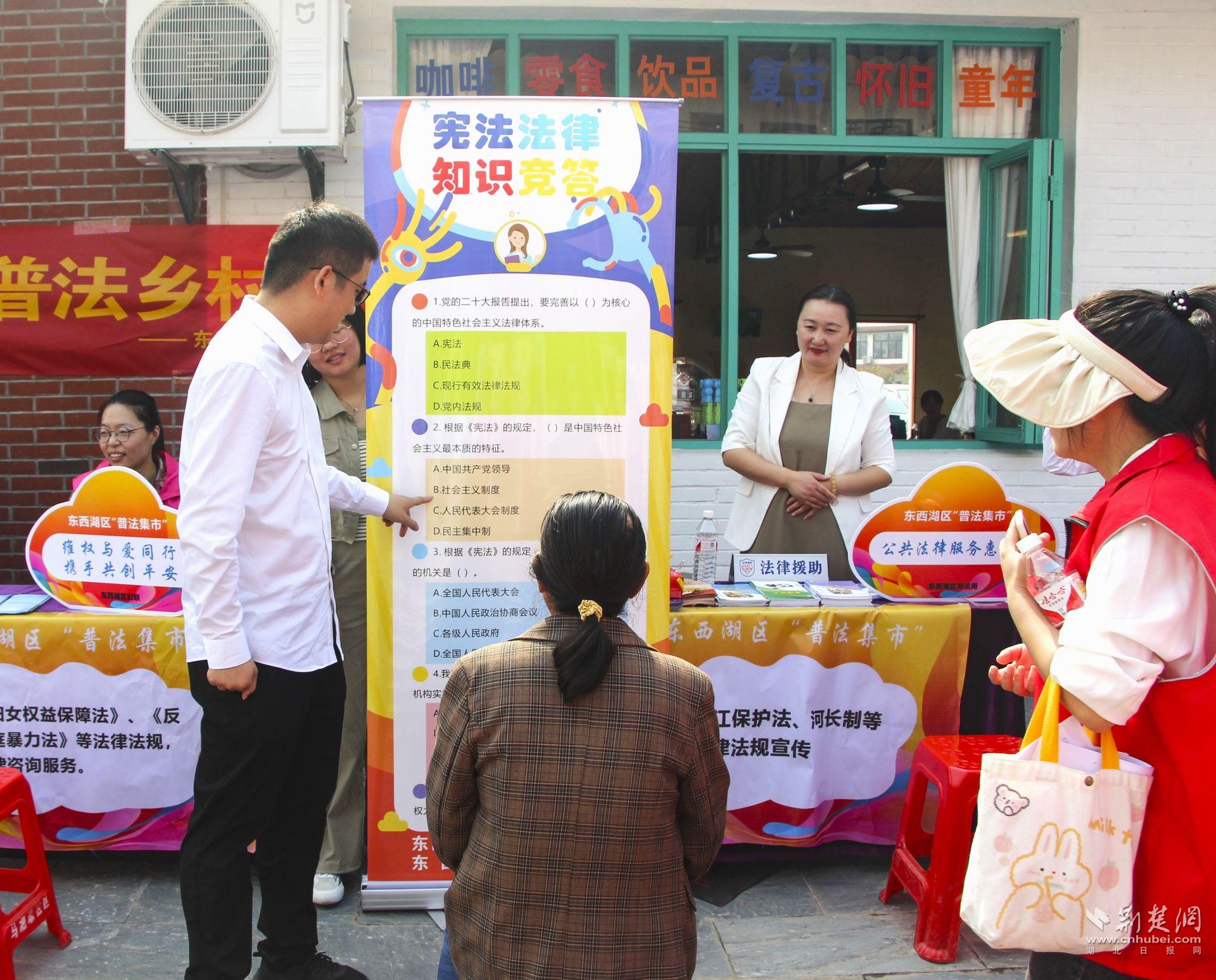 荆楚网(湖北日报网)讯(记者 周光洁 通讯员 石春康)“家里漏水漫到楼下怎么办?”“幼儿园跑路了学费还没有退?”“公司解除合同后怎么领取失业金?”……10月10日,聚焦“法治阳光洒社区 送法温情入万家”主题,武汉市东西湖区委依法治区办联合11家区直单位将“普法集市”开到了将军路街马池二村,通过接地气、润人心的方式,将普法知识送到新晋“网红村”的群众身边,为法治乡村建设助力。