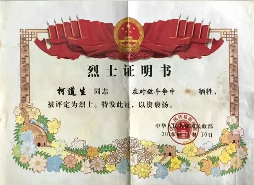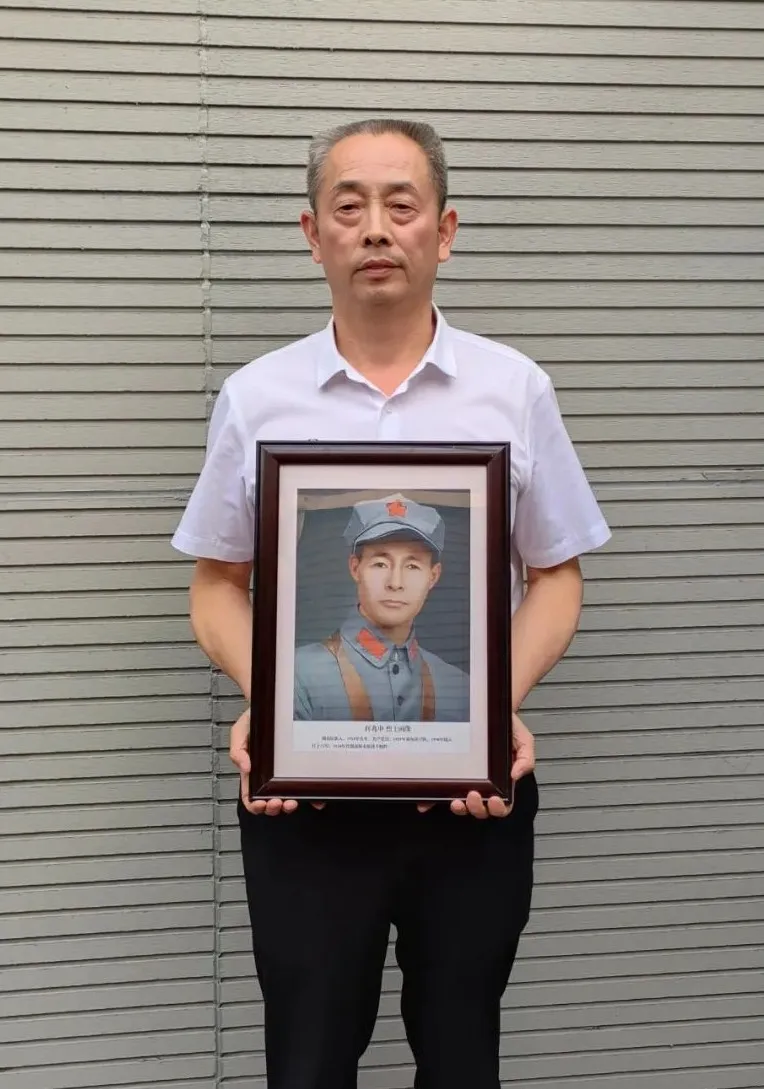提起父亲柯道生,作为儿子的柯亨明是陌生的,父亲牺牲得早,没留下任何相片,他只能从母亲的只言片语中,拼凑成一个模糊的形象:父亲是个抗战英雄。接过画像时,第一次见到父亲面容的柯亨明难掩激动,一遍一遍用因战争受伤的左手,摩挲着画像上年轻的脸庞。据柯亨明回忆,父亲柯道生曾任乡苏维埃文书,1930年白匪进攻苏区后,被敌人逮捕杀害,英勇牺牲,那时他只有1岁,还没有见过父亲。