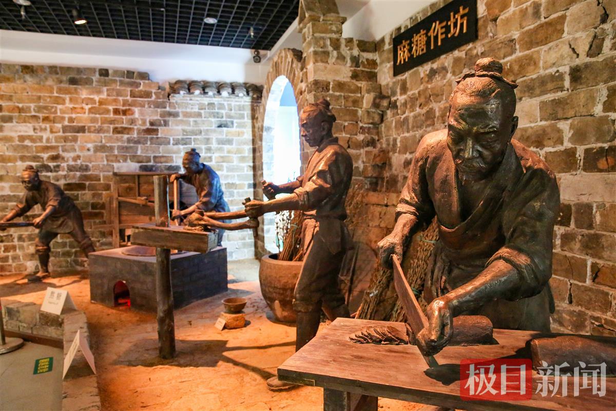 孝感麻糖米酒有限责任公司麻糖米酒博物馆内,雕塑展现传统麻糖生产技艺 (通讯员吴垠摄)