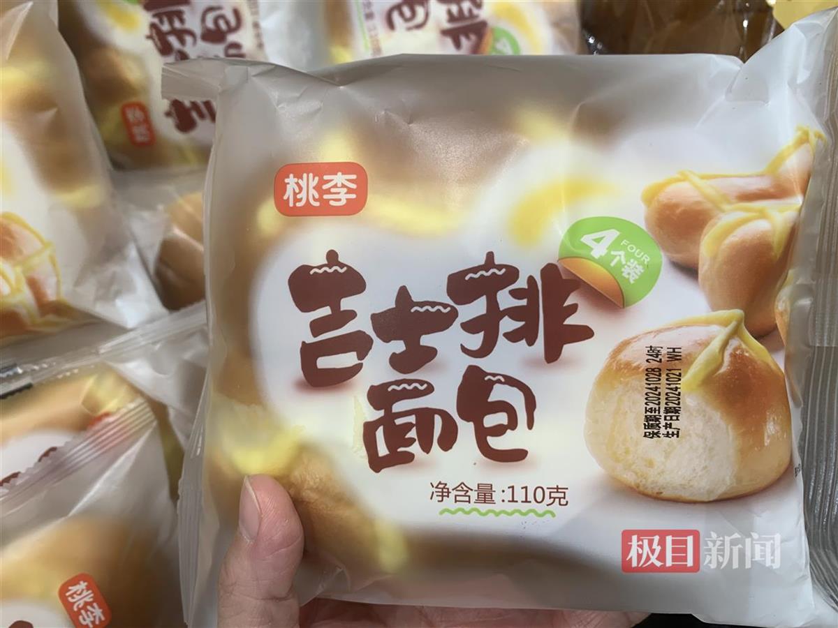 “看了下,这款岩烧吐司的配料还比较干净,只有小麦粉、沙拉酱、扁桃仁片、鸡蛋和食品用香精,没有太多的食品添加剂。”75岁的刘爹爹正在超市给孙子挑选面包等小零食。10月22日,极目新闻记者走进位于汉口金桥大道的一家连锁商超发现,商家将各种品牌的面包、糕点、烘焙食品摆放在入口处,方便顾客挑选。