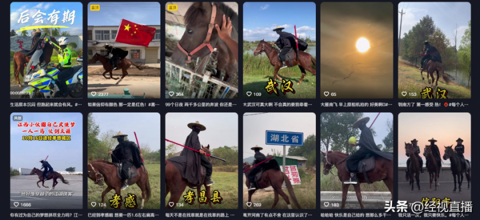 10月24日,经视直播记者联系上“钢炮”。对方告诉记者自己是个90后,之前曾从事电商行业,从小就有个武侠梦。“钢炮”的骑行计划缘起于今年6月在内蒙古旅行时的一次骑马体验。“骑了一次发现太爽了,就想骑着马从内蒙古的二连浩特出发,从最北骑到最南。从小就有武侠梦,刚好路上粉丝也建议这样打扮一下。”