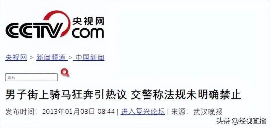2013年报道,襄阳市一男子曾策马在大桥上奔驰,交警试图阻拦未果。事后当地交警表示,《道路交通安全法》对于骑马上路并没有特别具体的规定,但为确保其他交通参与者正常通行,交警会进行劝导。