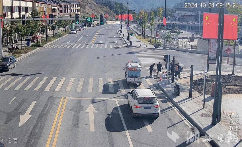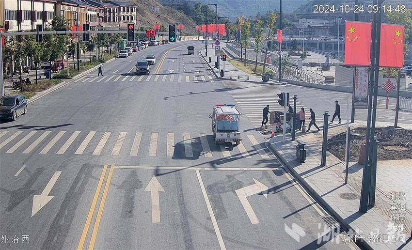 湖北日报客户端讯(记者祝兆林、通讯员欧阳智慧、李金荣)10月24日,在保康县后坪镇郑渝高铁保康县站站前十字路口,巡逻民警巧遇一辆货运三轮摩托车侧翻在人行道上,车载的蔬菜和水果等货物散落一地。巡逻民警“秒出警”,周边热心市民也迅速围拢过来救援。