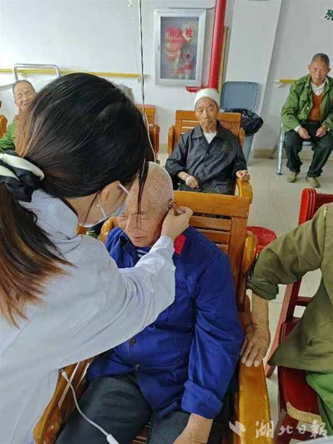 英山县民政局2022年初在石头咀镇农村福利院开展医养结合试点,加挂石头咀中心卫生院西河分院牌子,辐射4个乡镇。石头咀中心卫生院西河分院负责人曹志刚说,他们不仅服务福利院老人,也为分散供养特困人员治病。石头咀镇武显庙村村干部请他们救治一名患心脏病、看起来生命垂危的老人,老人住院近一个月病情好转,回到村里时,村干部、老人亲属惊讶地说:“你气色好多了,看起来像变了个人。”