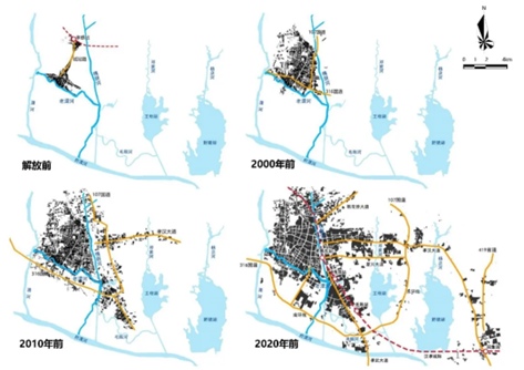 孝感市城市演变图。来源:微信公众号“中规院中部分院”