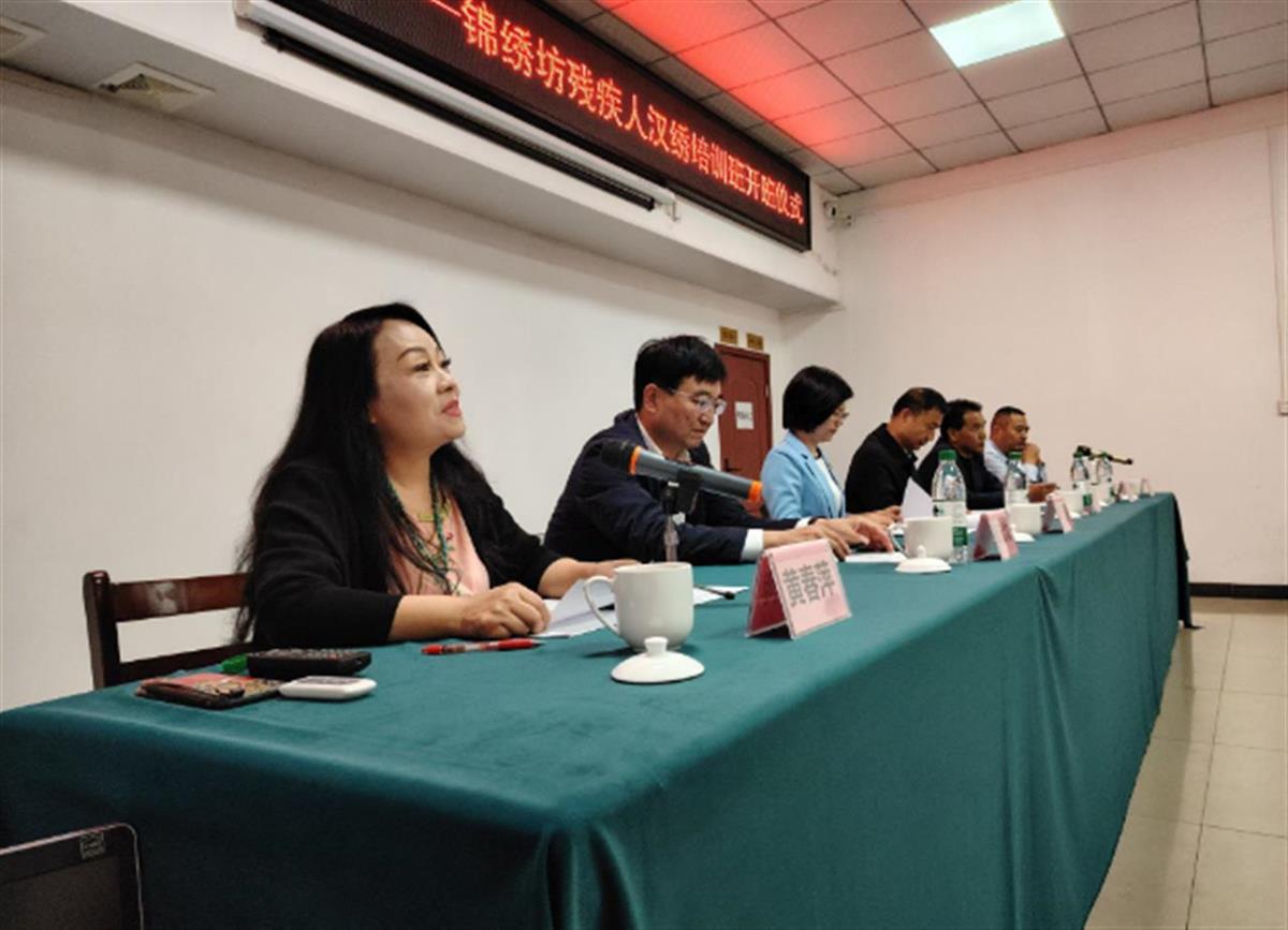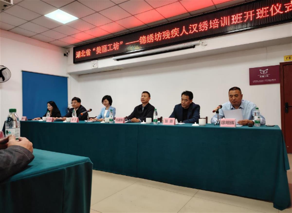 湖北省残疾人职业培训中心主任徐明辉主持了培训开班仪式,汉绣大师黄春萍介绍了本次培训班情况,湖北省残联教育就业处处长张勇同志对培训班提出了工作要求,由湖北省妇联党组成员、副主席李芳同志宣布培训班开班。