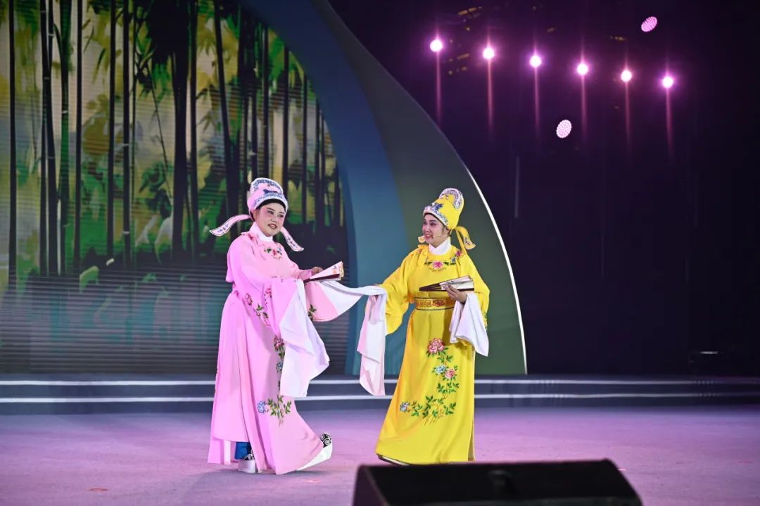 咸安区黄梅戏社会员梅萍与蔡林芳带来的黄梅戏对唱《新人是我同胎小九妹》婉转动听,让台下观众近距离感受到中华戏曲之韵、传统文化之美。