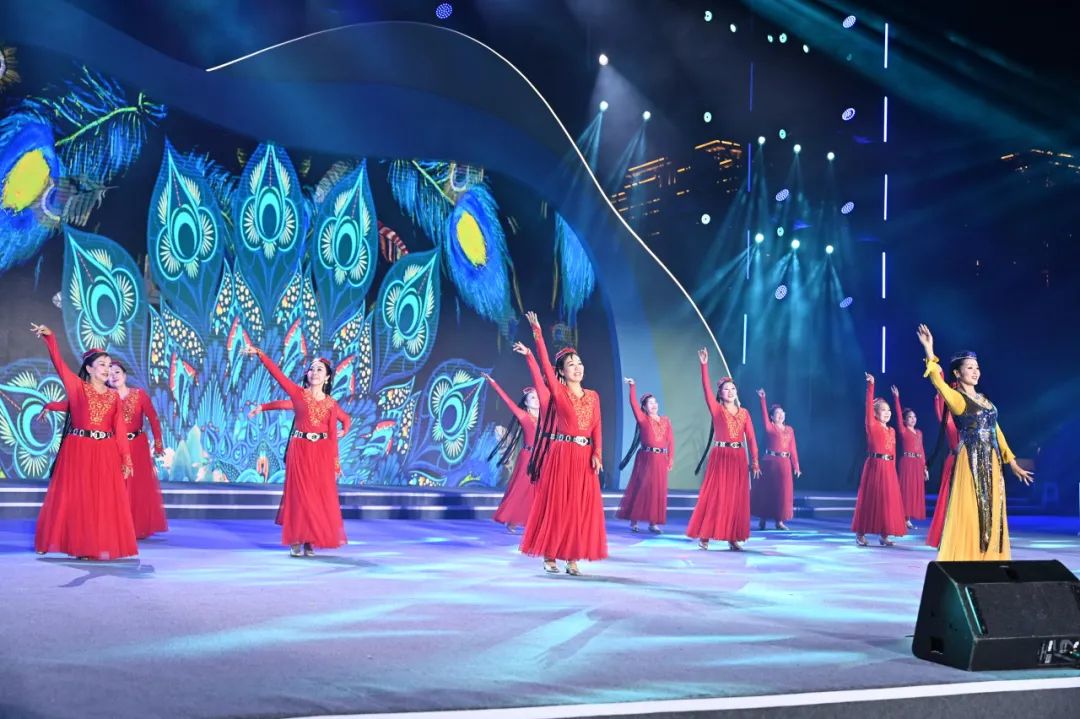 欢快的音乐响起,穿着绚烂民族服饰的大美新疆舞队员在悠扬的旋律中翩翩起舞,热情奔放的舞蹈瞬间点燃了现场的气氛。