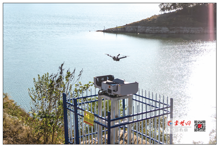 在丹江口市凉水河镇柳河口村,一架归巢式无人机从机巢缓缓升空。几分钟后,碧波浩渺的丹江口水库以及丛林繁茂的库岸便清晰地呈现在监视器画面上。