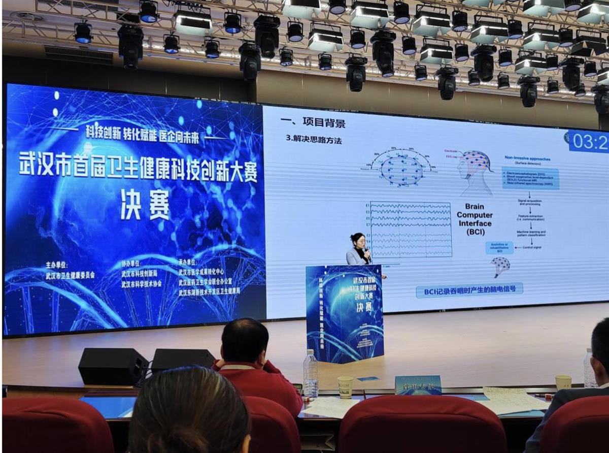 大赛现场,武汉市汉口医院康复医学科杨露团队开发出吞咽想象的脑机接口(BCI)技术,该技术通过精准捕捉脑电信号,巧妙刺激吞咽肌肉,治疗效果显著,应用前景广阔,为神经源性吞咽障碍患者带来康复新希望。该技术荣获现场最高分,赢得了决赛评审团的高度赞誉。