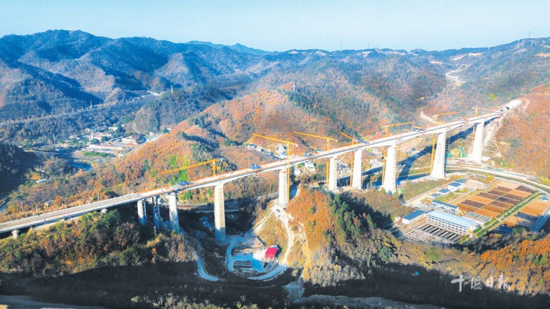 该衔接工程位于高铁十堰东站西侧神定河峡谷内,桥梁全长841.05米,是西十高铁湖北段控制性工程。