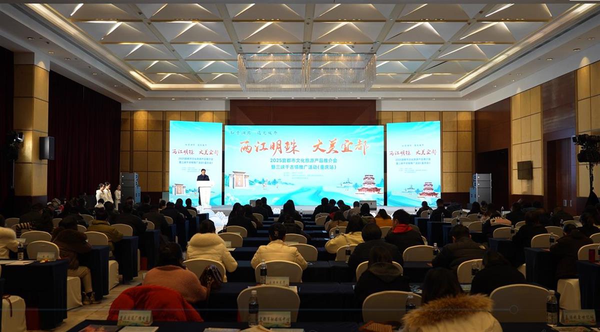 12月23日,“两江明珠,大美宜都”2025宜都市文化旅游产品推介会暨三峡千古情推广活动(重庆站)举行,50余家两地的文旅企业、旅行社及在渝湖北籍商会代表近200人参加活动,通过宣传推介、合作签约等多种形式,促进两地文旅交流,搭建文旅协作新平台。