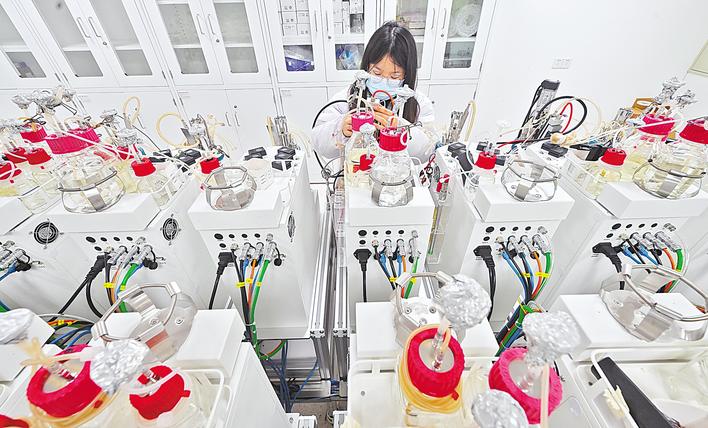 12月24日,湖北安琪生物集团有限公司技术人员正在进行酵母蛋白菌种筛选发酵实验。 (湖北日报全媒记者 刘曙松 摄)