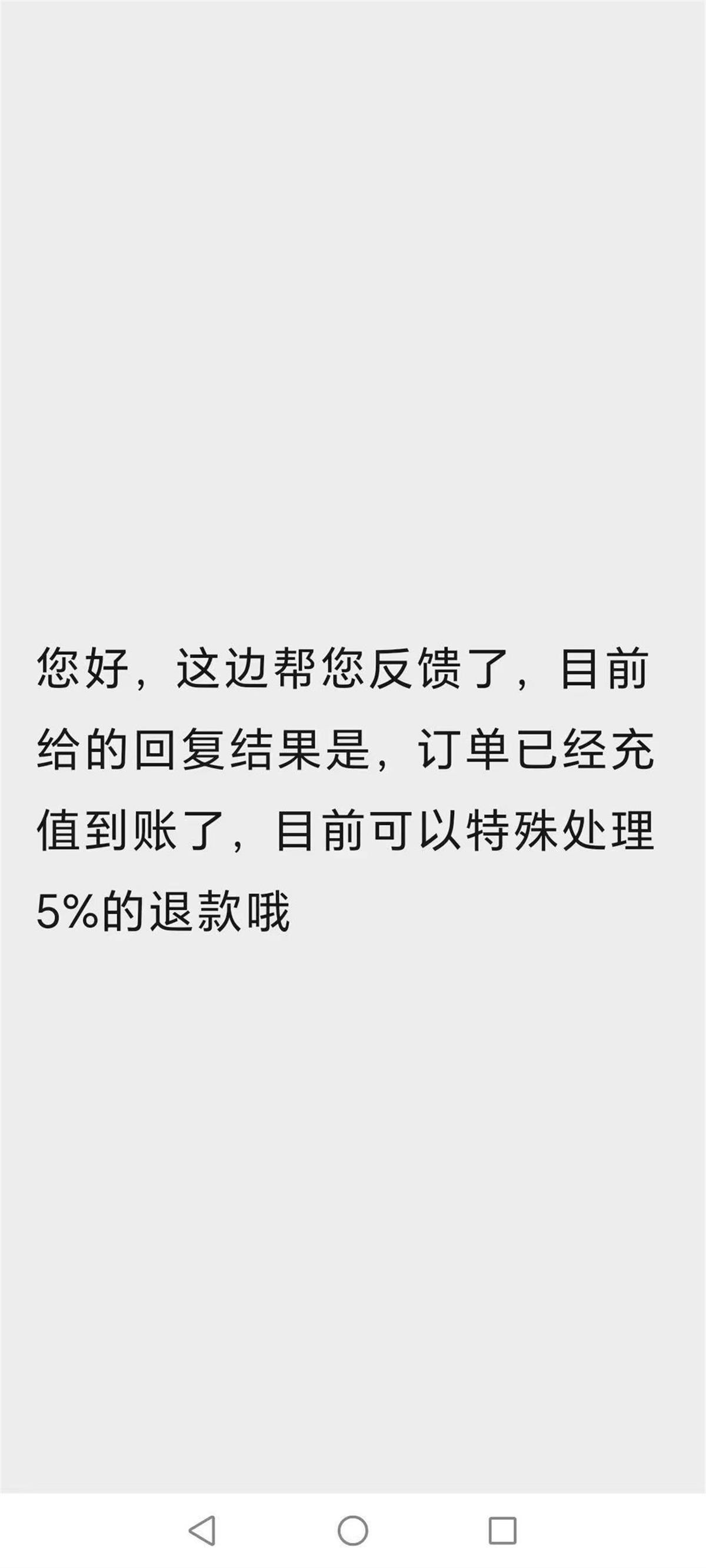 带着疑惑,廖女士找到代充平台的官方客服进行协商。“在经过多次沟通后,对方客服表示,对于未成年人的充值退费,将有专人进行协商。在向对方提供了孩子的出生证明后,对方表示,将会进行核实处理。”廖女士介绍:“过了数天后,对方表示,因已经充值到账,金额无法追回,但可以根据平台收益退还5%,其余部分,则建议向游戏方申请退款。”